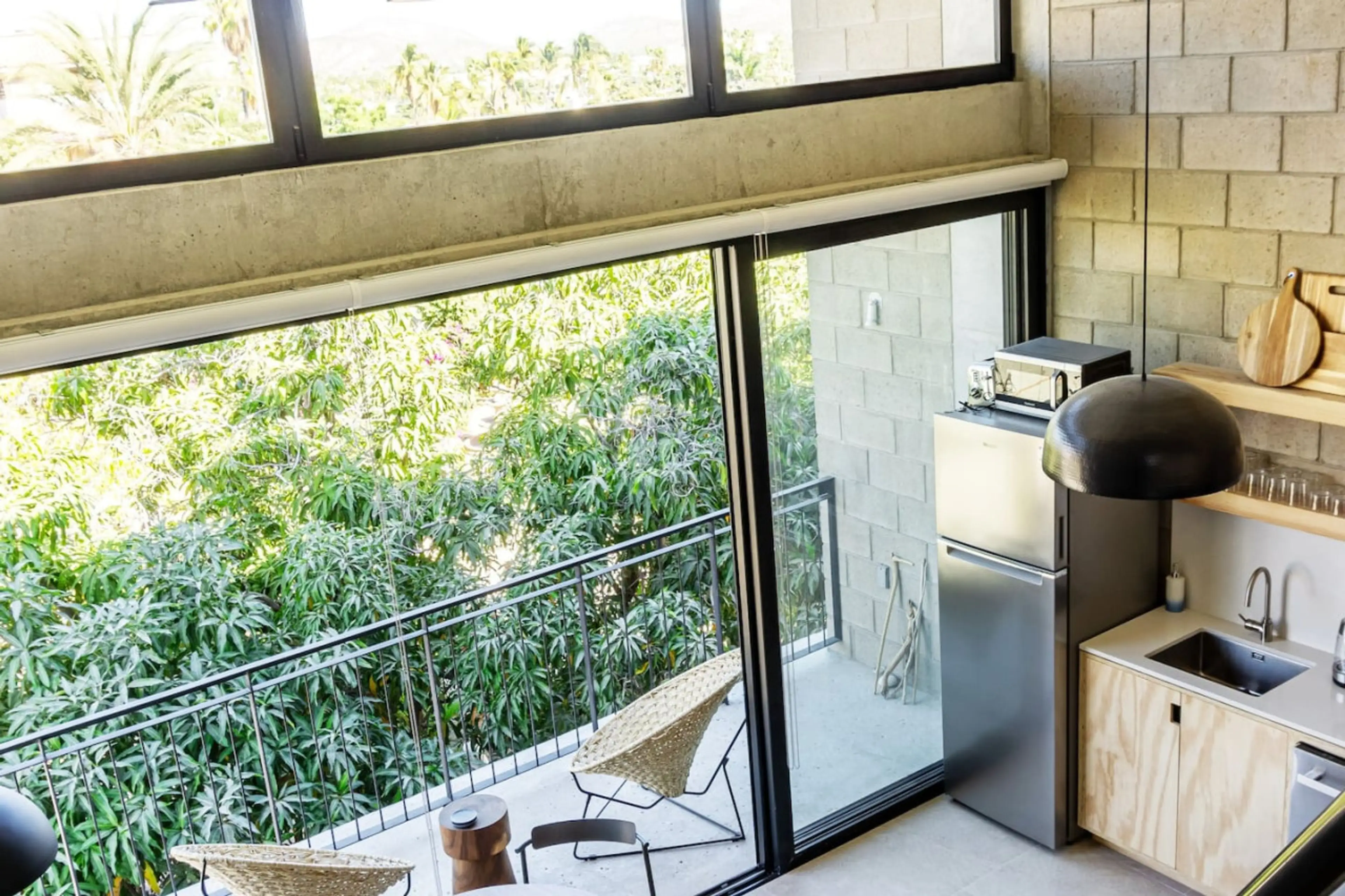 Enjoy a stylish LOFT experience at this centrally-located place in the heart of San Jose del Cabo. Minutes walk to beach & the charming downtown full of restaurants, cafes & bars. Modern earthy NEW construction overlooking peaceful gardens. Fully equipped kitchen, 1 loft bedroom, 1 den, 2 full bathr...