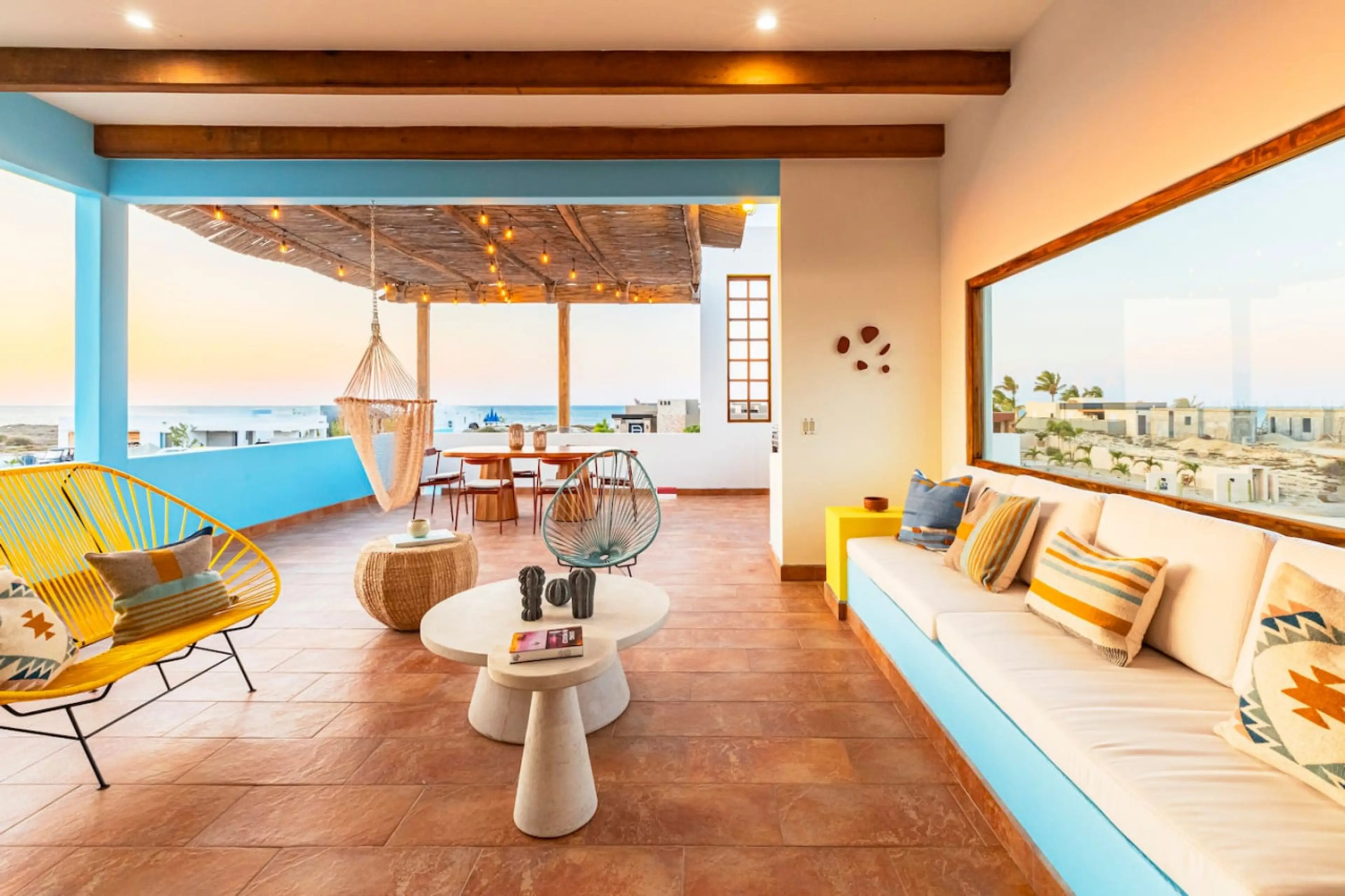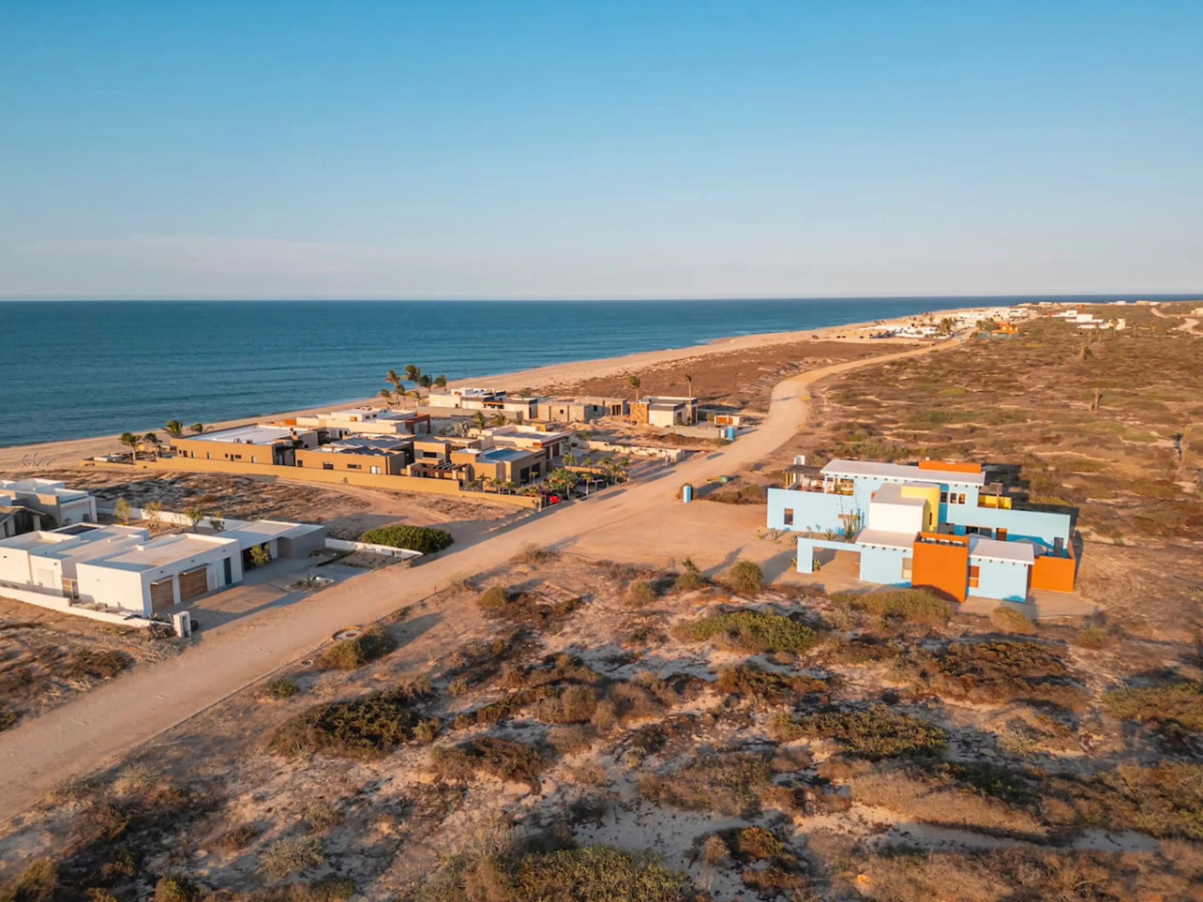 This contemporary beach house is a striking example of modern architecture, characterized by its bold use of color and clean, geometric lines. This property is locates in a beachfront community, only 50 yds away from the beach. Enjoy a swimmable relaxing paradise on the Sea of Cortez. - Master Bed...